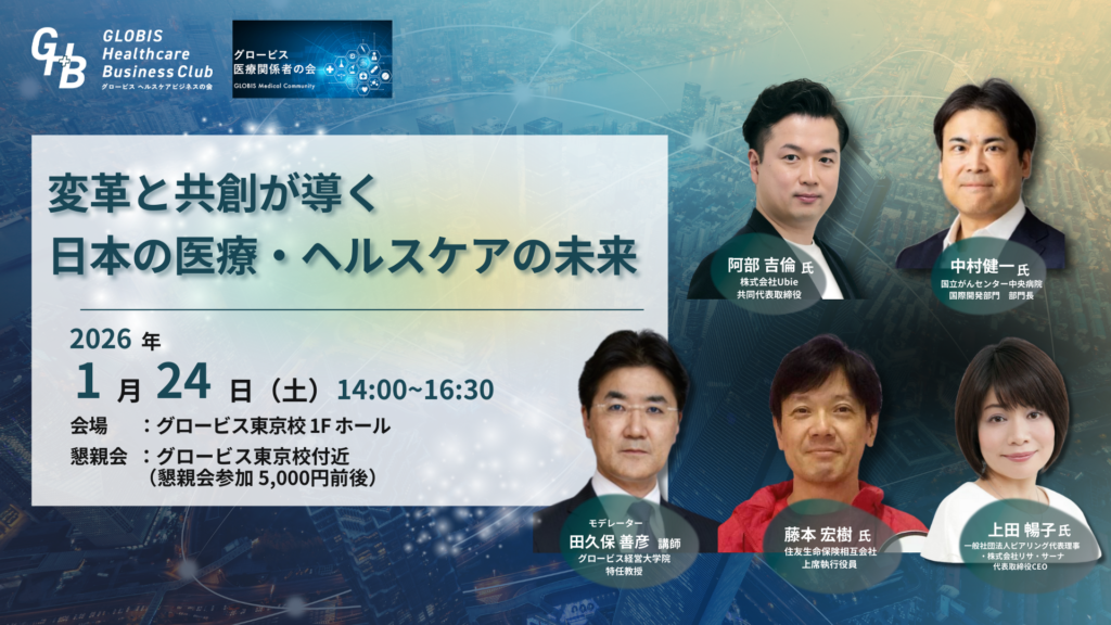 2026年1月24日(土)、グロービス東京校1Fホールにて開催の「変革と共創が導く 日本の医療・ヘルスケアの未来」パネルディスカッションに弊社代表 上田暢子が登壇します